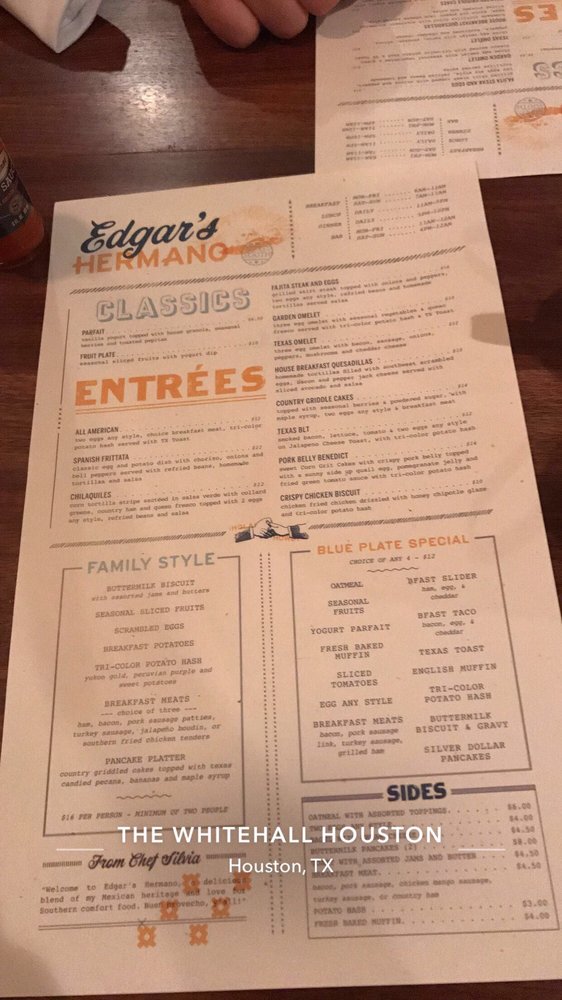 Edgar's Hermano is a trendy and classy New American-Tex-Mex restaurant located at 1700 Smith St in Houston, TX. This restaurant offers a plethora of amenities, including takeout, delivery, wheelchair accessibility, QR code menus, and more. The menu at Edgar's Hermano boasts many vegetarian options and is known for its delicious offerings like the snapper, steak nachos, and steak fajitas. Customers have praised the attentive staff, accommodating service, and variety of drinks available. The ambiance is described as quiet and welcoming, making it a great spot for groups, families, and even solo diners. Whether you're looking for a casual meal or a special occasion, Edgar's Hermano has something to offer for everyone.